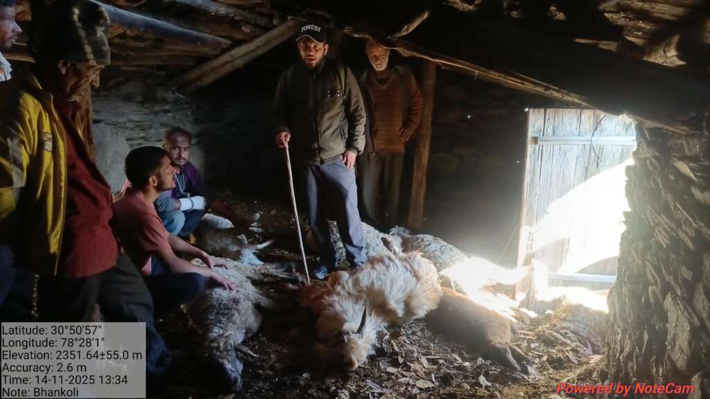 आज 14 नवंबर 2025 को सुबह करीब 11 बजे जब वे गौशाला पहुँचे तो देखा कि भालू ने गौशाला को तोड़कर भेड़-बकरियों पर हमला कर दिया। घटना में 08 भेड़ें और 02 बकरियां मारी गईं, जबकि 04 बकरियां गंभीर रूप से घायल हुई हैं।