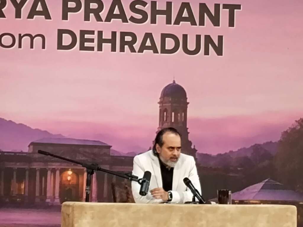 आचार्य प्रशांत ने भगवद्गीता से सत्र की शुरुआत की , कहा कि आज समाज की ज्यादातर समस्याओं की जड़ “अज्ञान” है। “आत्मज्ञान के बिना इंसान जो भी करेगा—चाहे रिश्ता बनाए या विकास—वह अंततः स्वार्थ, डर और लालच पर आधारित होगा,” ।उत्तराखंड में बदलते मौसम और बढ़ती आपदाओं पर उन्होंने गंभीर चिंता जताई,कहा कि “अप्रैल में भारी बारिश होना सामान्य नहीं है। यह साफ संकेत है कि प्रकृति असंतुलित हो चुकी है,”