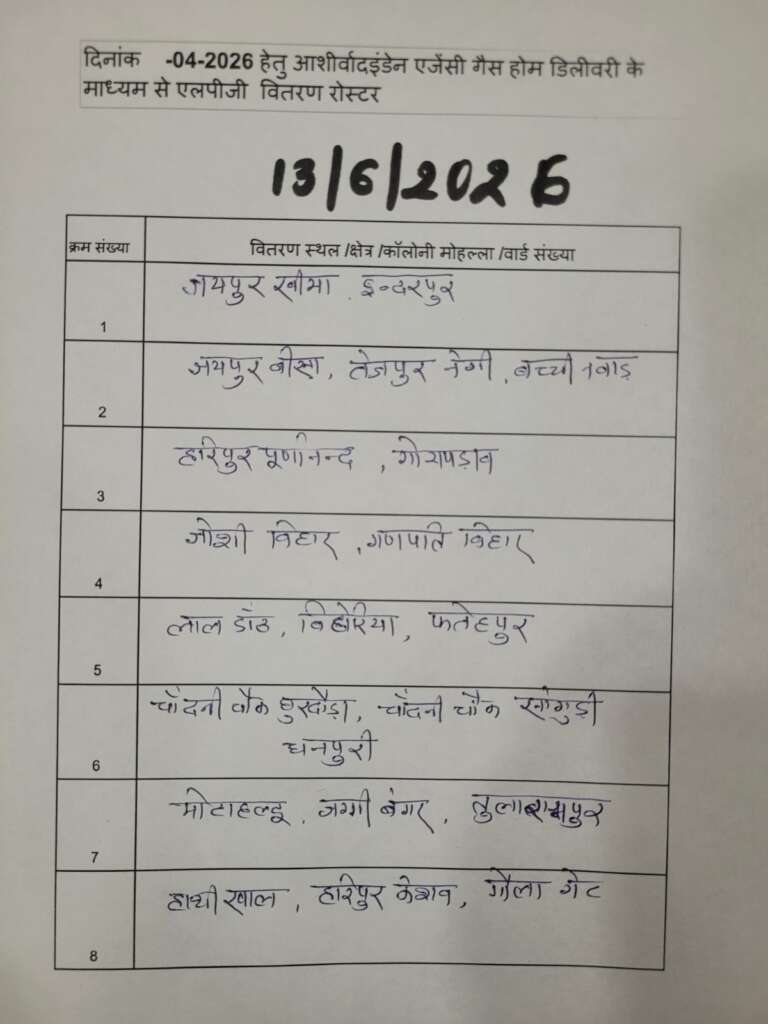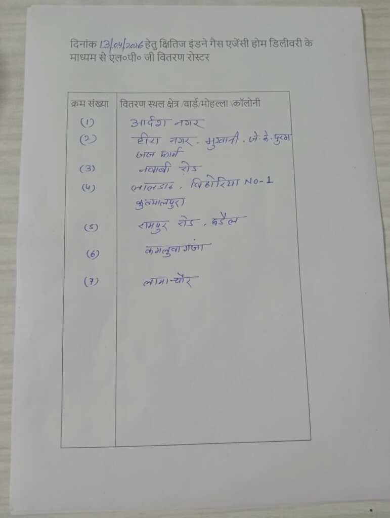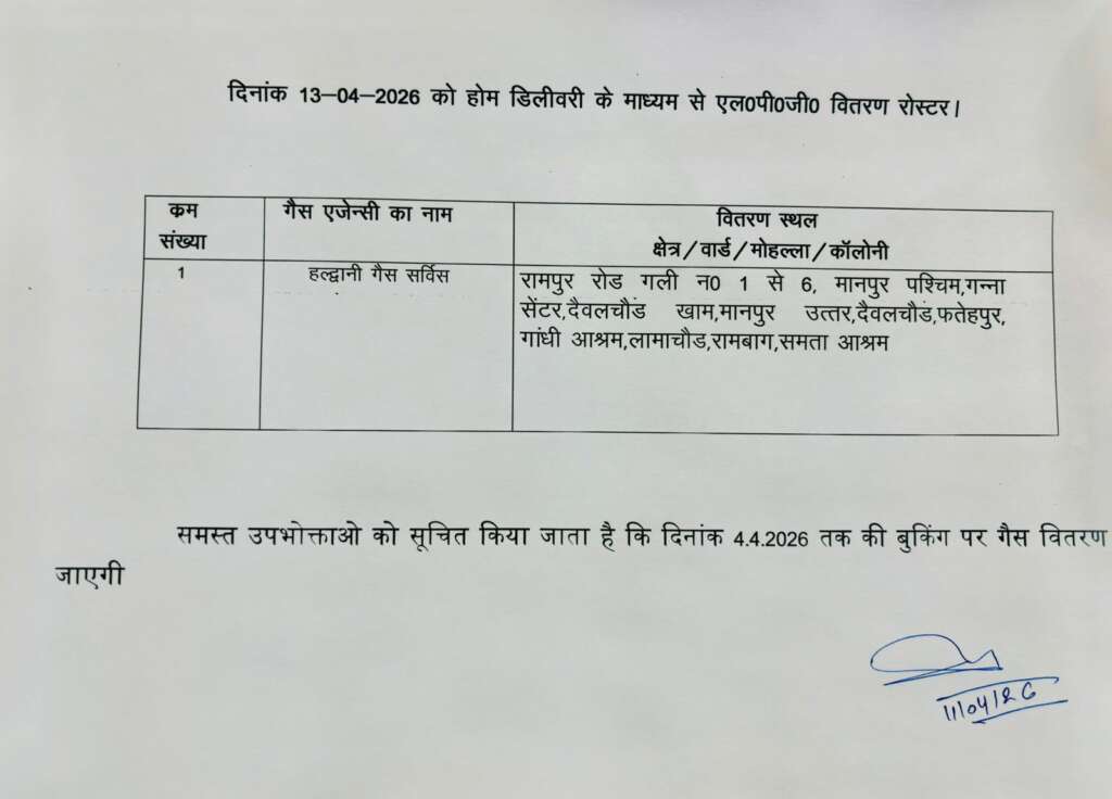 हल्द्वानी में गैस वितरण का रोस्टर जारी