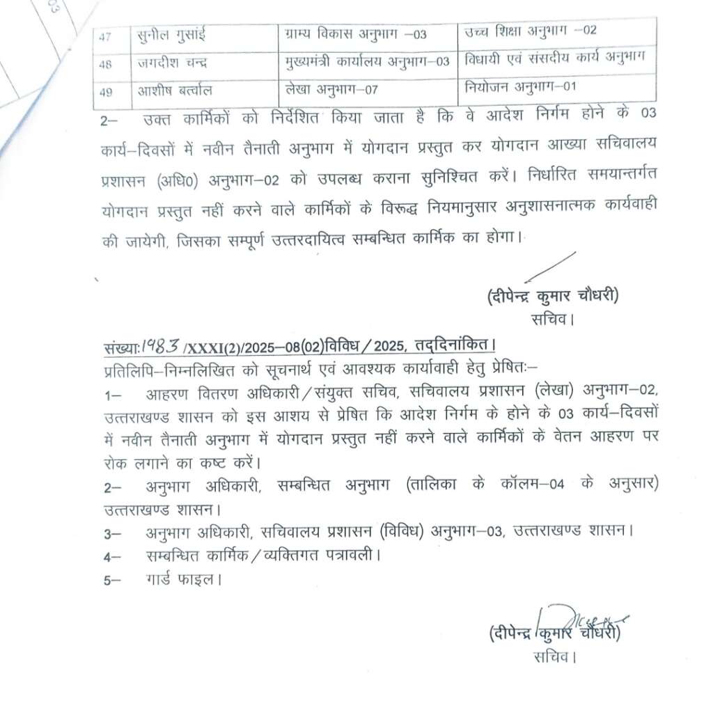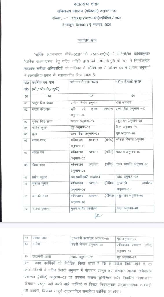 उत्तराखंड सचिवालय में पहली बार तबादला नीति के तहत