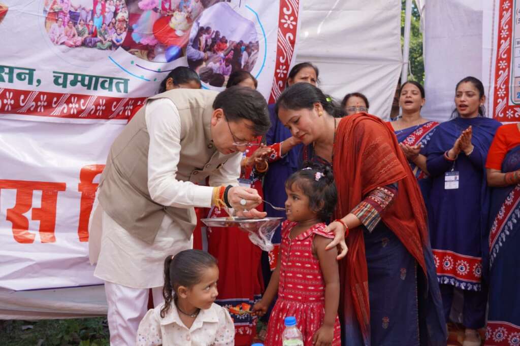 पारंपरिक लोक संगीत और सांस्कृतिक उल्लास से भरे इस आयोजन में महिलाओं ने पारंपरिक परिधान पहनकर मुख्यमंत्री का ढोल-दामऊ और छोलिया नृत्य के साथ स्वागत किया, जबकि विद्यालय के बच्चों ने बैंड वादन से वातावरण को और भी ऊर्जावान बना दिया।