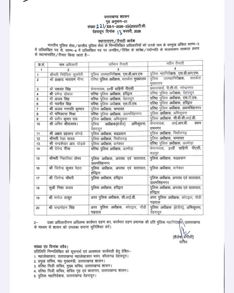 बड़ी खबर(देहरादून)शासन ने किए आईएएस और पीसीएस अधिकारियों के स्थानांतरण ।।