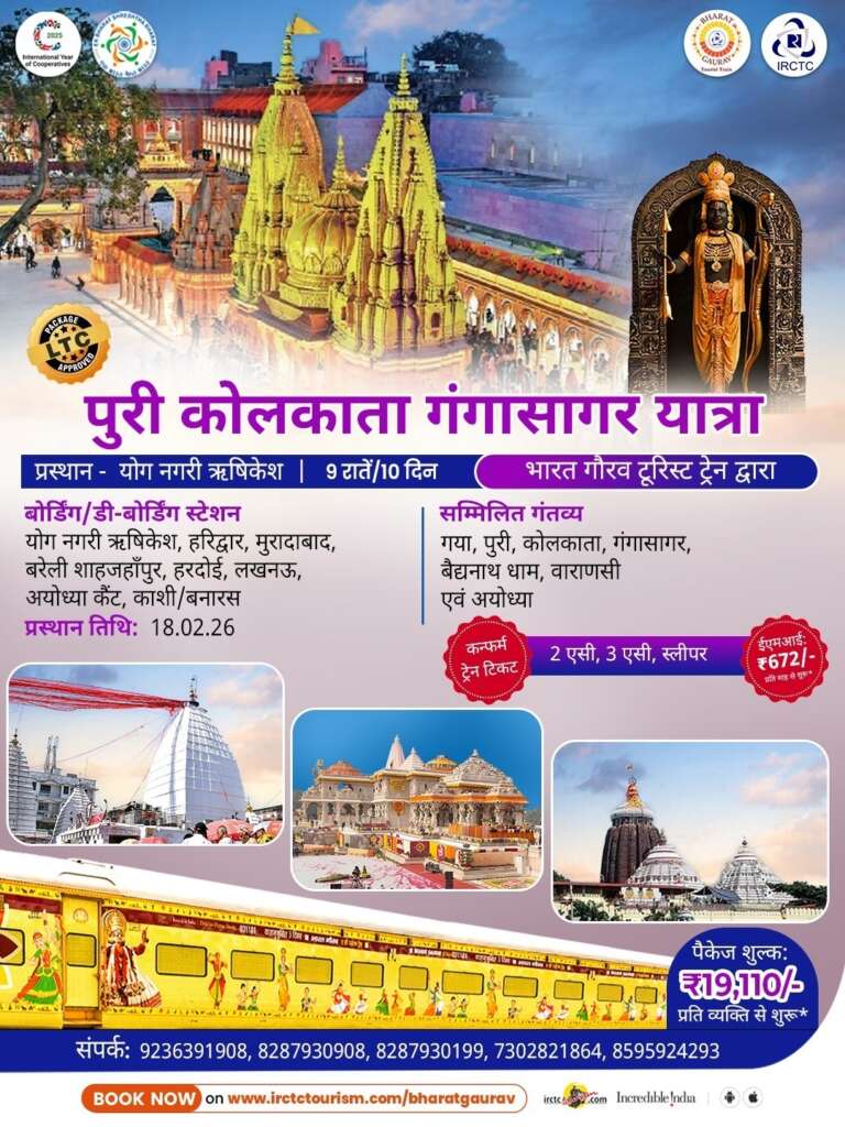Uttarakhand city news Rishikeshआईआरसीटीसी की भारत गौरव टूरिस्ट ट्रेन के माध्यम से पुरी कोलकाता गंगासागर यात्रा करने का सुनहरा मौकाइंडियन रेलवे कैटरिंग...