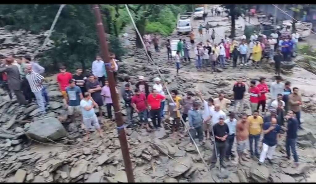 जिले के नौगांव क्षेत्र में शनिवार शाम को बादल फटने की घटना ने तबाही मचा दी। अचानक हुई तेज बारिश से देवलसारी खड्ड और नौगांव गदेरे में उफान आ गया। देखते ही देखते पानी का बहाव इतना तेज हो गया कि ग्रामीणों में अफरा-तफरी मच गई। लोग अपनी जान बचाने के लिए घरों से निकलकर सुरक्षित स्थानों की ओर भागने लगे। स्थानीय लोगों के अनुसार तेज बहाव में खेतों और सेब के बागानों को भारी क्षति पहुंची है। कई स्थानों पर कृषि भूमि मलबे में दब गई, वहीं पानी की लहरों में बाइक और स्कूटियां बह गईं, जिससे निजी संपत्ति को भी भारी नुकसान हुआ।
